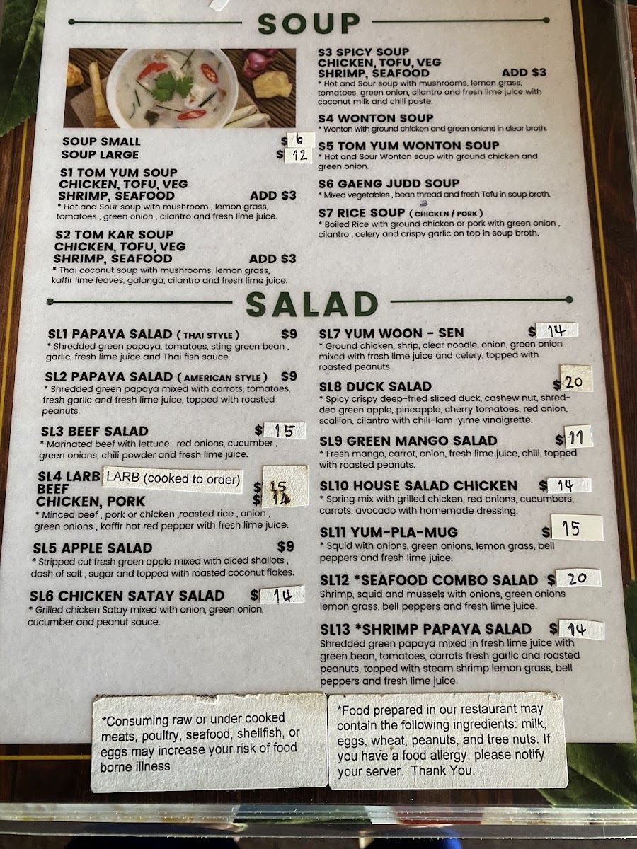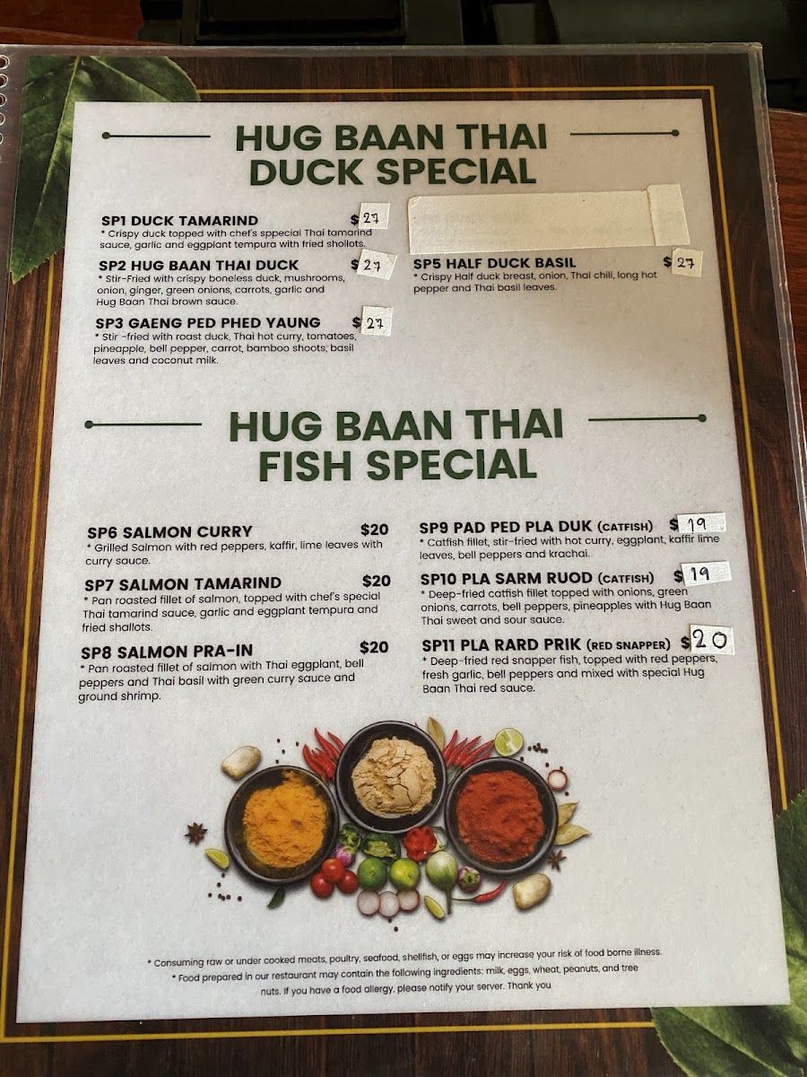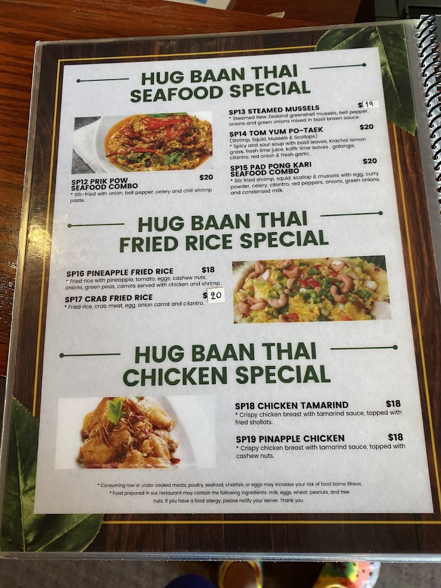 The menu at Hug Baan Thai offers a well-rounded selection of traditional Thai dishes crafted with care and attention to authentic flavors. It strikes a balance between comforting classics and vibrant, aromatic specialties—perfect for those seeking a genuine taste of Thai cuisine in a relaxed, inviting setting.