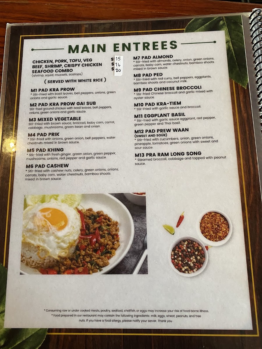 - Main courses such as Drunken Noodles or Peanut Curried Chicken provide hearty, richly flavored meals.